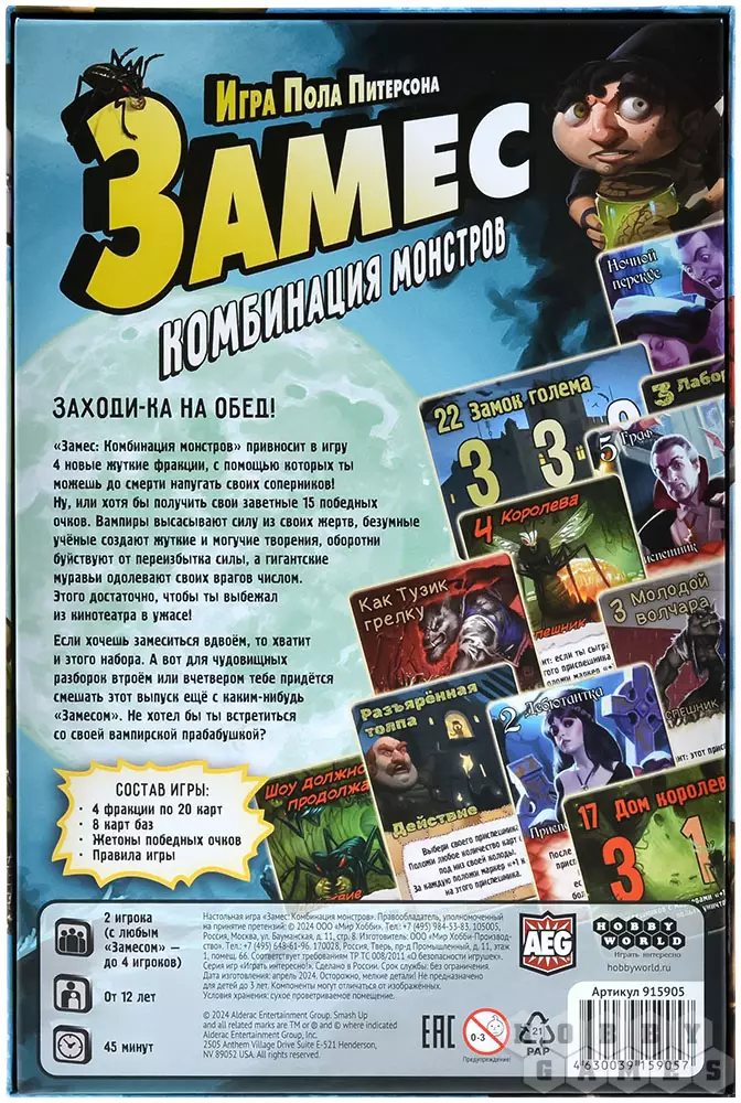 "Замес: Комбинация монстров" добавляет в игру четыре новые устрашающие фракции, благодаря которым вы сможете заставить трепетать своих соперников! Или, по крайней мере, добиться желанных 15 победных очков. Вампиры истощают жизненные силы своих жертв, превращая их в иссушенные оболочки. Безумные учёные собирают из частей монстров новых, ещё более страшных и могущественных тварей. Оборотни буйствуют, изливая свою неистовую энергию на всех вокруг. А гигантские муравьи, множество которых растёт с каждой минутой, непрерывно наступают и одолевают противников числом. Всё это создаёт атмосферу достаточно напряжённую, чтобы вы выбежали из кинотеатра, в страхе оглядываясь по сторонам!