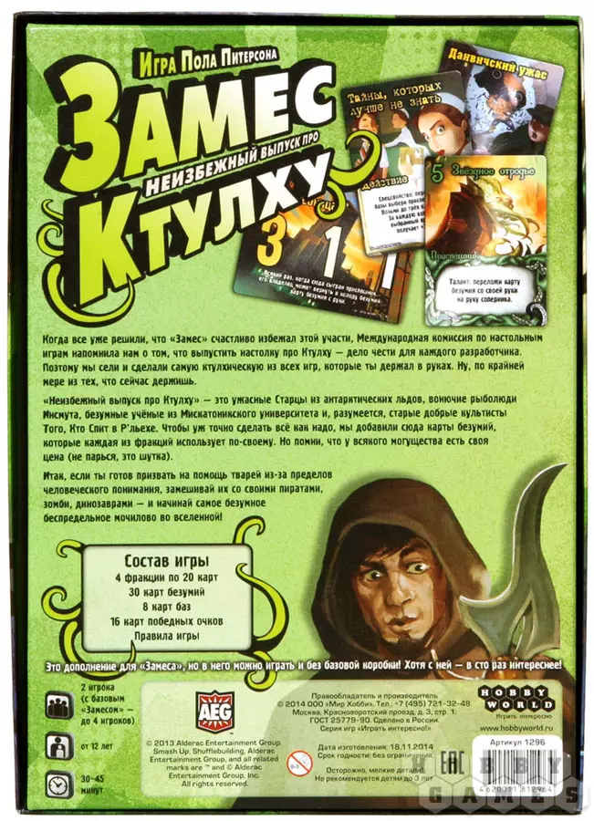 Новое, дикое, ктулхулированное дополнение для самой гремучей настольной игры "Замес" уже почти в ваших руках! Новые фракции объединятся под вашим началом для крушения ваших оппонентов, а новые карты "Безумие" перевернут игру с ног на голову! В коробке вас ожидают: