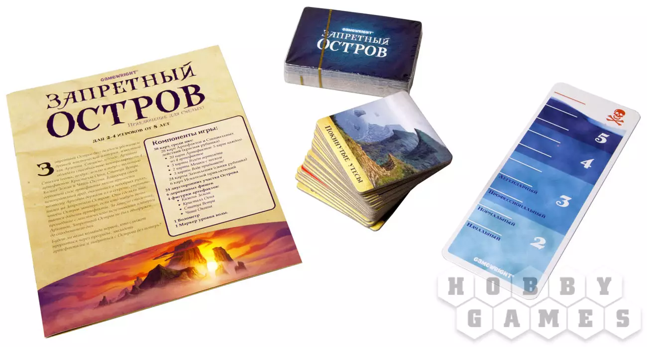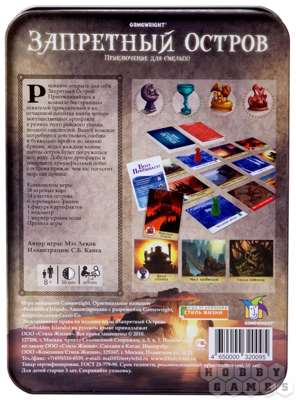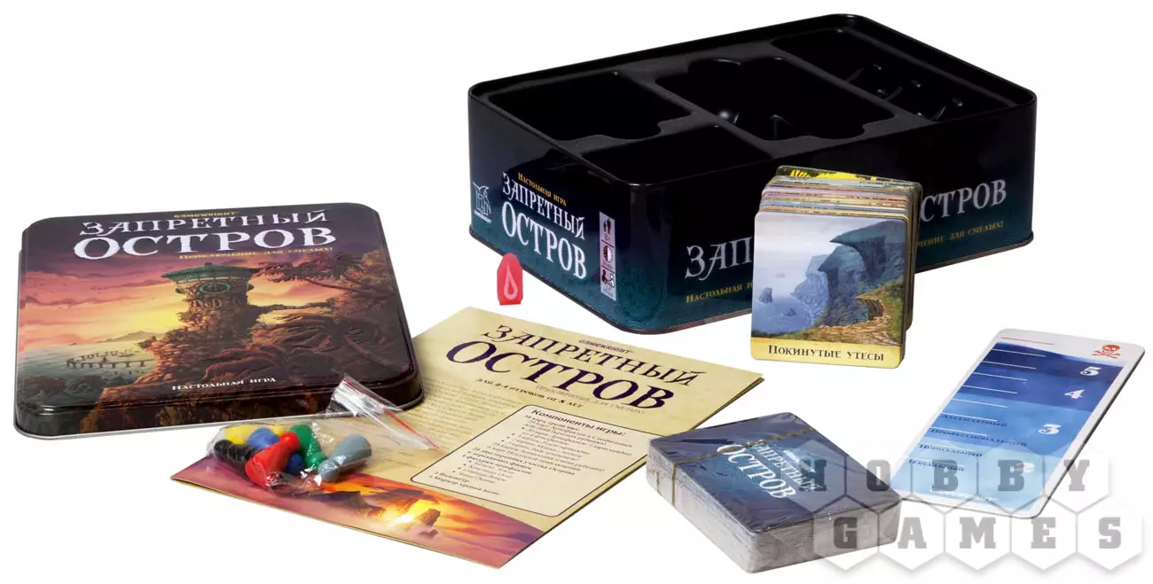 "Запретный остров" – настольная игра игра для большой компании где игроки в роли бесстрашных искателей приключений исследуют остров, на котором спрятаны бесценные древние артефакты. Вся проблема в том, что остров (как только исследователи оказываются на нем) начинает стремительно уходить под воду.