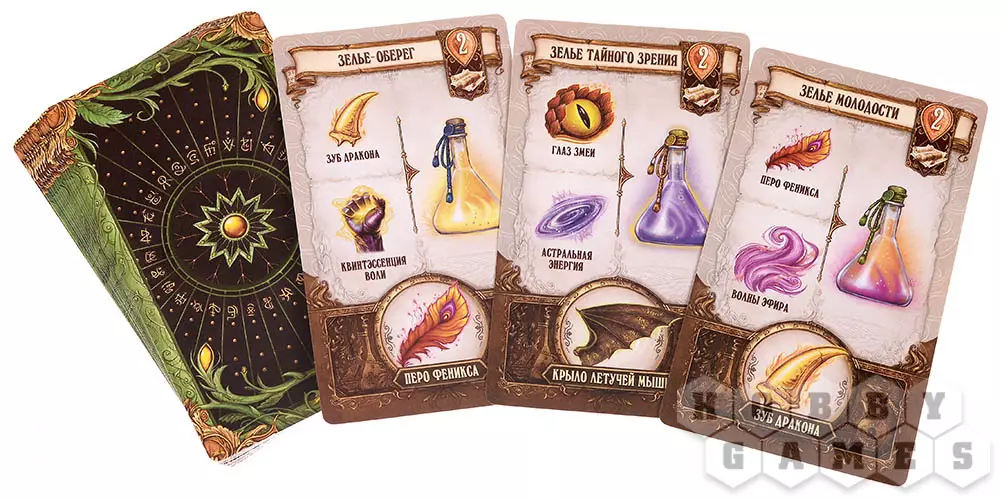 В ходе игры каждый игрок становится учеником школы волшебства, собирая ингредиенты и используя их для создания зелий по древним рецептам. Будьте внимательны – неверный шаг может привести к взрыву! Выполняя рецепты, вы зарабатываете кристаллы, которые наполняют вас магической силой. Тот, кто наберёт больше всего очков силы к концу игры, станет победителем.