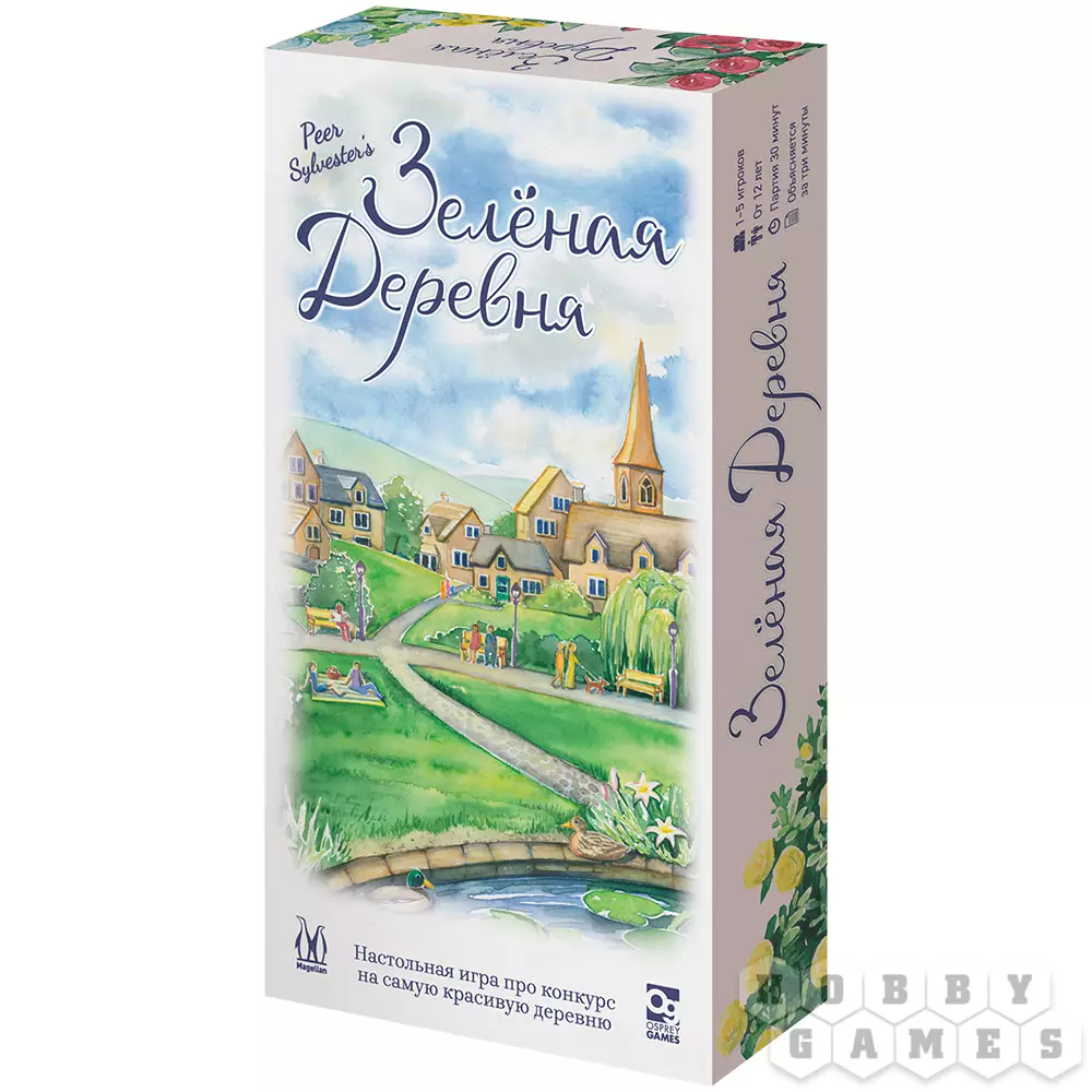 "Зелёная деревня" – это карточная настольная игра, в которой вы будете развивать парк в своей деревне, высаживая цветы и деревья, строя беседки, фонтаны и пруды. В игре есть 2 основные колоды карт: