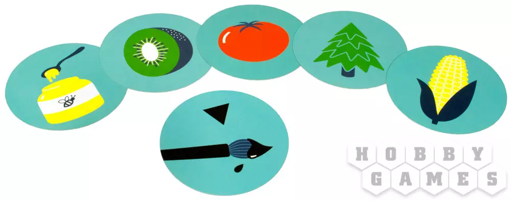 Каждый игрок получает по десять карт кистей одной формы. Форма кисти просто определяет игрока. Из стопки карт-жетонов предметов и животных выбирается шестнадцать жетонов, которые образуют квадрат 4х4. Жетоны кладутся обесцвеченной стороной вверх. В начале раунда активный игрок достаёт один жетон красок и переворачивает его, так что игроки могут увидеть, каким цветом мы "красим" в этот ход. Ваша задача – как можно быстрее положить ваши кисти на те жетоны, которым соответствует выбранный цвет. Если цвет был зелёным, то жетон, например, можно положить на лягушку, кузнечика и так далее. Когда все закончили, проходит поверка – жетоны предметов переворачиваются для того, чтобы узнать правильный цвет. Игроки, которые правильно выполнили задание, могут забрать жетоны себе – это ваши победные очки.