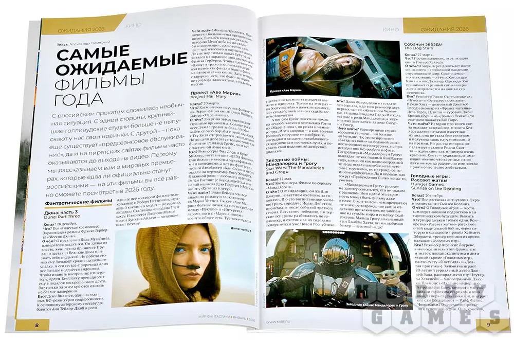 В январском номере ударники фантастического труда по традиции делятся прогнозами ближнего прицела: какие кинокартины, телевизионные сериалы, литературные произведения, анимационные ленты и видеоигры выйдут в наступающем году.