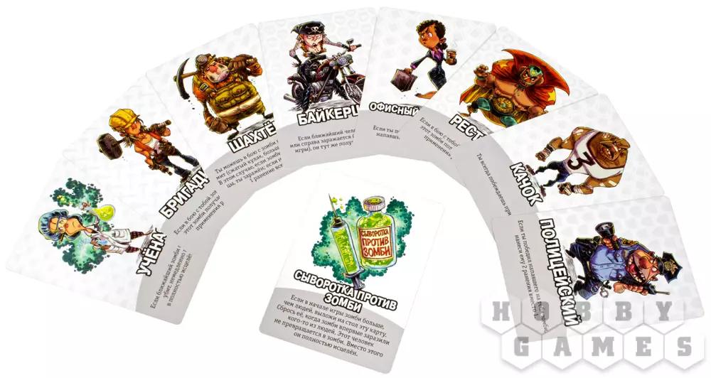 Перед началом партии каждому игроку раздаётся по одной карте персонажа. На каждой карте с одной стороны изображён человек с уникальной способностью, а с другой – зомби. Все игроки кладут карту перед собой "человеческой" стороной вверх. Раздающий игрок играет с соседом справа в "Камень, ножницы, бумага". Проигравший игрок становится зомби, как и все игроки через одного от него. Именно они переворачивают свои карты "зомби" стороной вверх. В свой ход игрок-зомби может напасть на одного игрока-человека справа или слева с помощью игры "Камень, ножницы, бумага". Кто проигрывает, тот получает одно ранение. Зомби нужно получить три ранения, чтобы выйти из игры, а человеку всего два ранения, чтобы стать зомби. После выполнения действий ход передаётся следующему игроку-зомби, при этом игроки-люди могут только защищаться от нападения.