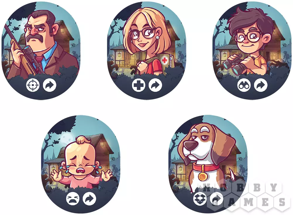 Вы будете ходить по очереди, исследуя локацию заброшенного дома с целью найти ключи от машины и канистру с топливом. По ходу игры вам нужно будет переворачивать лежащие на игровом поле карточки, где можно найти разные полезные вещи: катаны, автоматы, дробовики, арбалеты, ну, или зомби, против которых всё это нужно применять. И всё это для того, чтобы поскорее убраться от страшных зомби!