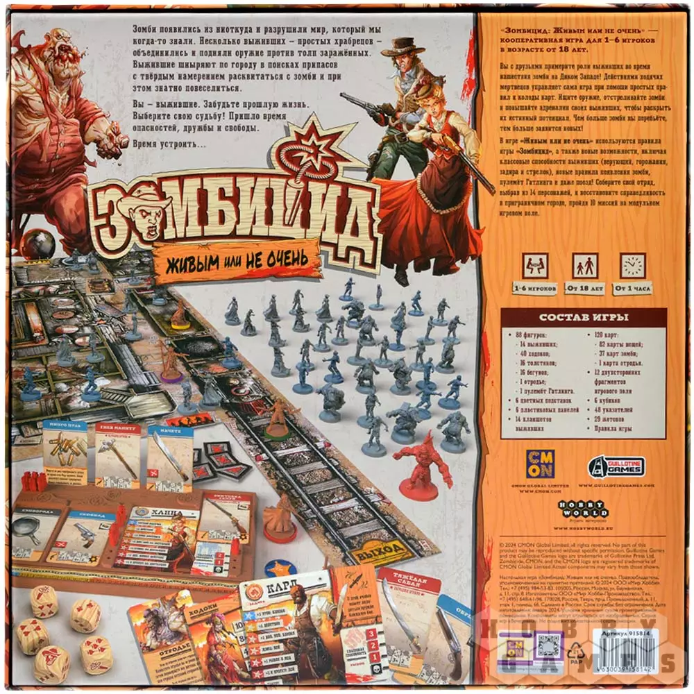 "Зомбицид: Живым или не очень" – кооперативная игра, в которой игроки окажутся в роли выживших в эпоху зомби-нашествия на Диком Западе! Забудьте всё о своей предыдущей жизни. Ступайте на тропу опасности, проверьте на прочность свою дружбу и добейтесь справедливости и свободы.