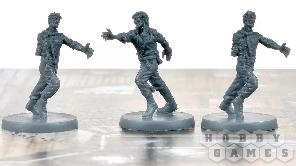 Не все зомби медленные и предсказуемые, выжившим посчастливится встретиться с четырьмя разными типами зомби. У бегунов два действия за раунд, толстяка не так просто уложить, а вот отродье... в этом случае настоятельно рекомендуется запастись динамитом.