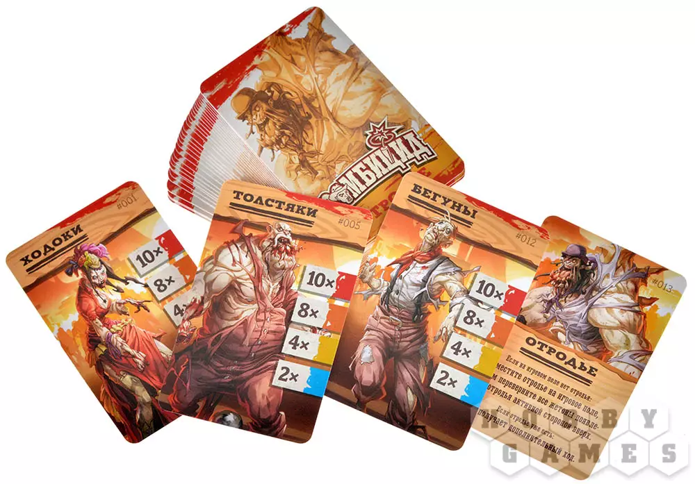 Действиями зомби управляет сама настольная игра за счет несложных правил и карточной колоды. Исследуйте окрестности в поисках оружия, уничтожайте полчища ходячих мертвецов, наращивайте адреналин ваших персонажей, раскрывая тем самым их способности. Чем больше зомби – тем более опасные вызовы предлагает игра!