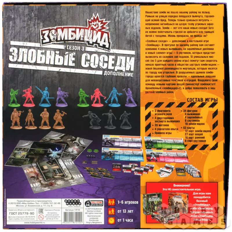 Внимание! Это не самостоятельная игра. Для игры вам понадобится базовый "Зомбицид", либо "Зомбицид. Штурм тюрьмы", либо "Зомбицид. Улица Морг".