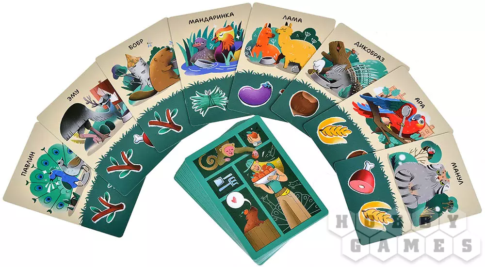 Чем питаются капибары? Что предпочитают овцебыки? Какой вкусняшке всегда рад тапир? Ответ на эти и другие вопросы касательно меню братьев наших меньших вы найдёте в настольной игре "Зоопарк". Кстати, название выбрано неслучайно: в создании игры принимали непосредственное участие сотрудники главного зоопарка страны, а если точнее, то киперы. Это такие люди, которые заботятся о животных в зоопарке. Именно они проконсультировали по каждому виду животного, подробно рассказали о нём и о его рационе. Ну что же, просим к обеденному столу!