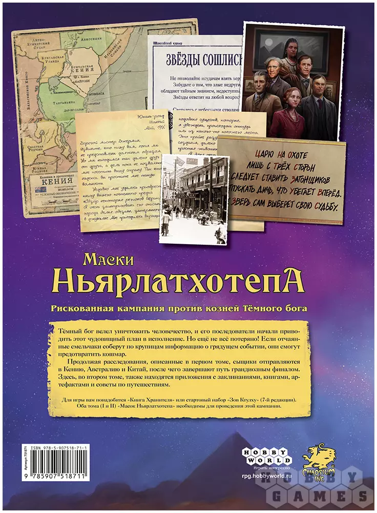 Как и в первом томе, вы продолжите искать зацепки в экзотических локациях – Кении, Австралии и Китае. Там вам предстоит столкнуться с новыми проявлениями древнего зла. Этот том содержит захватывающее продолжение кампании, грандиозный финал, а также уникальные материалы: редкие заклинания, мистические артефакты, запретные книги и практические советы по организации международных расследований.